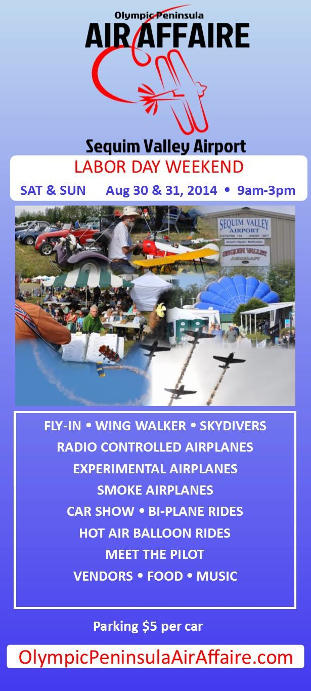 It’s even more of an honor for me to be a part of it as the Sequim Valley Airport is owned by my son-in-law’s family. Last year they had over 3,000 people in attendance for Labor Day Weekend and this year promises to be even greater! Come enjoy a country flavor air event on the wonderful Olympic Peninsula in Sequim, WA!